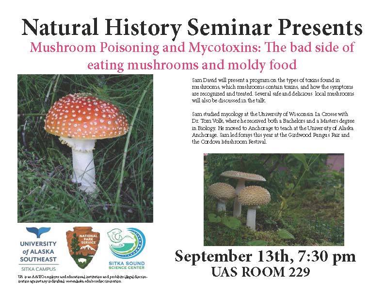 NaturalHistorySeminarFlierOnMushrooms Published September 4, 2018 at 792 × 612 in UAS-Sitka Campus to host annual class on how to identify Southeast Alaska mushrooms ← Previous Click on image to enlarge