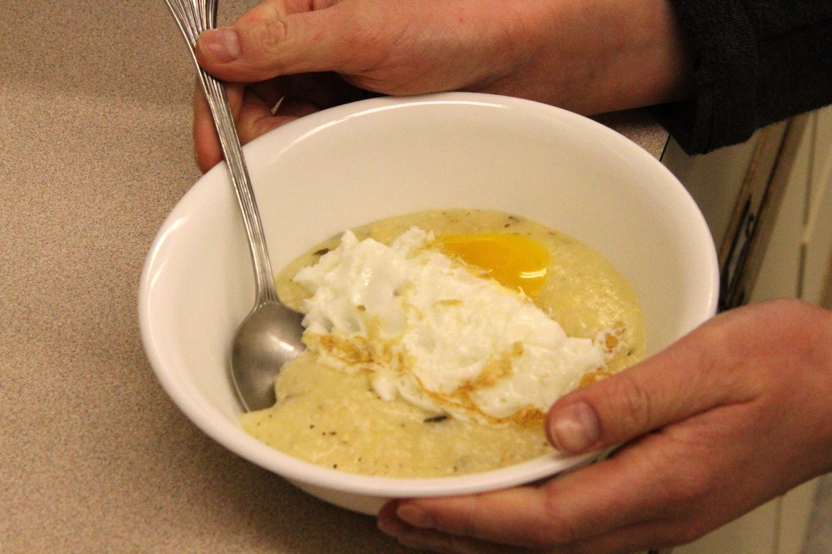 BowlOfGritsWithEggOverEasyOnTop Published November 28, 2018 at 2700 × 1800 in Scenes from the Sitka Kitch’s Cooking Around The World series class Cajun Cooking With Geof Goudeau ← Previous Next →