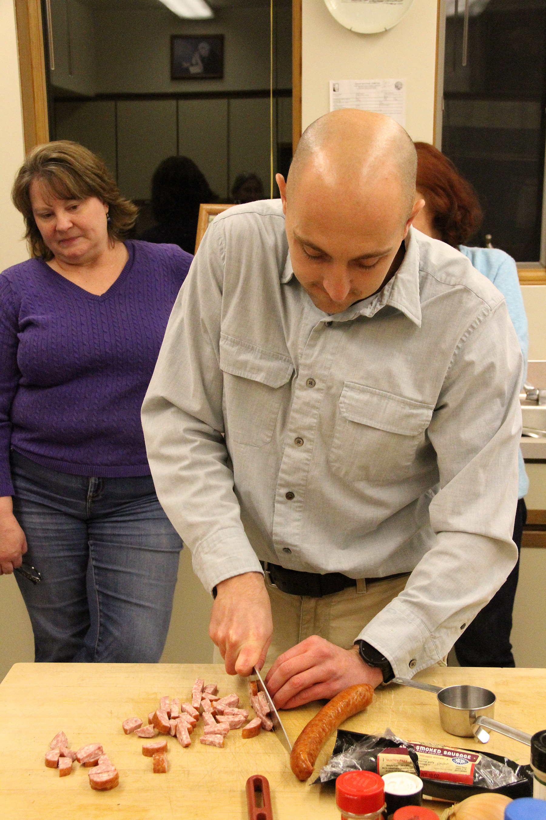 SueWatchesGeofChopSausage Published November 28, 2018 at 1800 × 2700 in Scenes from the Sitka Kitch’s Cooking Around The World series class Cajun Cooking With Geof Goudeau ← Previous Next →