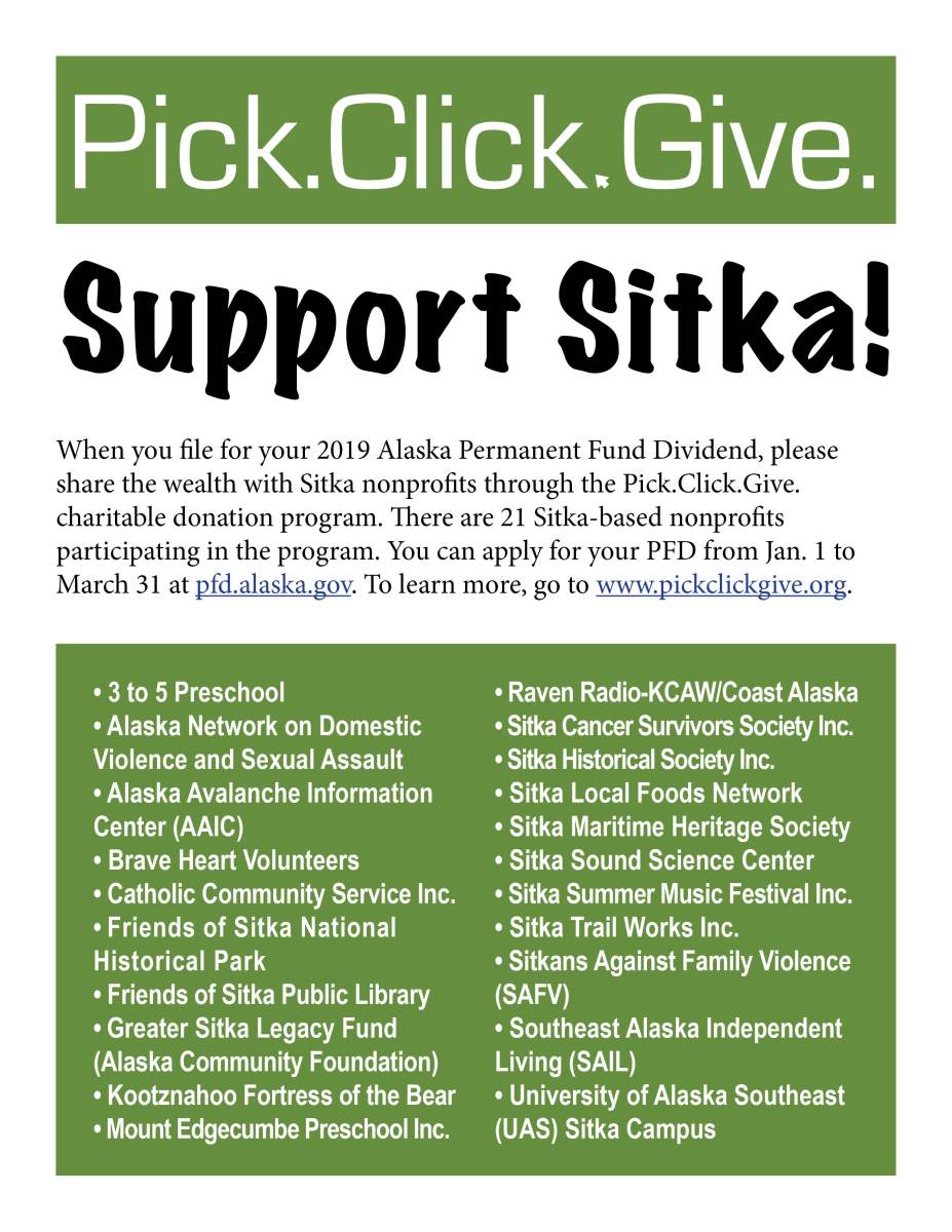 SupportSitkaFlier2019 Published December 26, 2018 at 2550 × 3301 in Tuesday’s the day to start filing your 2019 PFD applications with Pick.Click.Give. donations ← Previous Next →