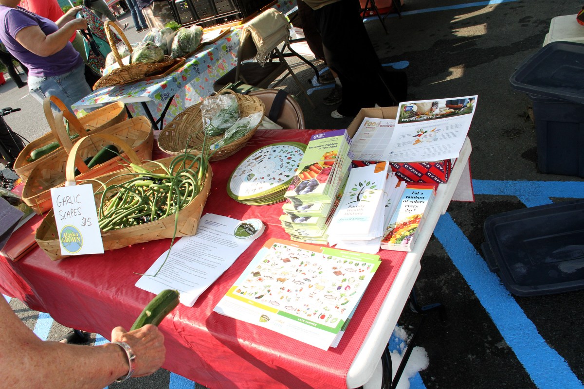SLFNBoothGarlicScapesCancerPartnershipLiterature Published July 8, 2019 at 2700 × 1800 in Scenes from the first Sitka Farmers Market of the 2019 summer ← Previous Next →