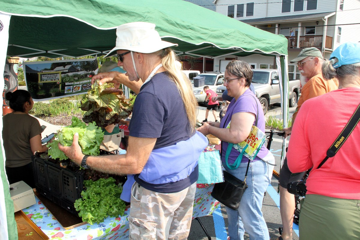 SLFNBoothGuyWithPonytailGetsLettuce Published July 8, 2019 at 2700 × 1800 in Scenes from the first Sitka Farmers Market of the 2019 summer ← Previous Next →