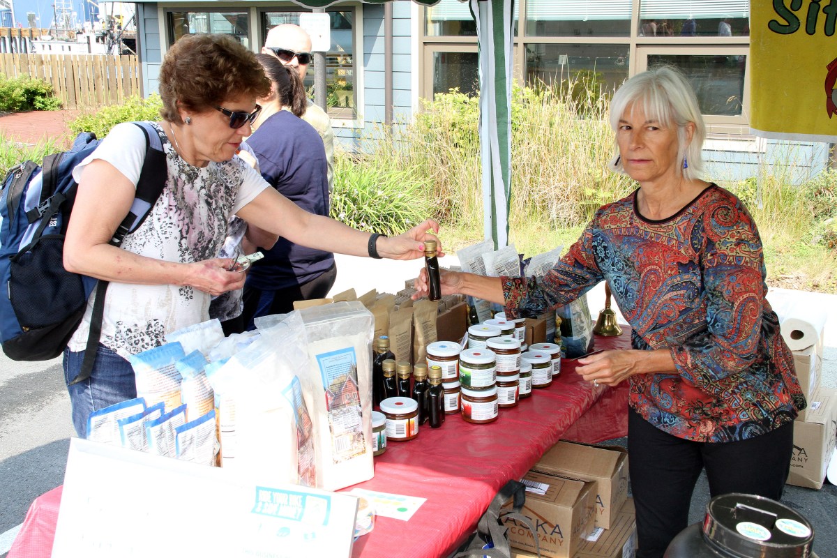 SLFNBoothPatriciaAtkinsonHelpsCustomerWithBirchSyrup Published July 8, 2019 at 2700 × 1800 in Scenes from the first Sitka Farmers Market of the 2019 summer ← Previous Next →