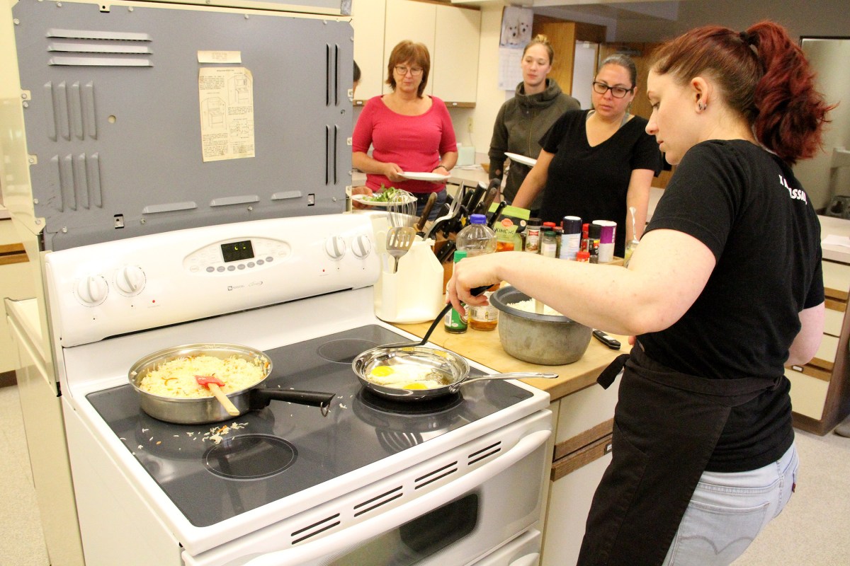 StudentsWatchKaylaFryRiceAndEggs Published July 24, 2019 at 2700 × 1800 in Scenes from the ‘Preservation/Fermentation 101 With Kayla Caprice’ class July 22 at the Sitka Kitch ← Previous Next →