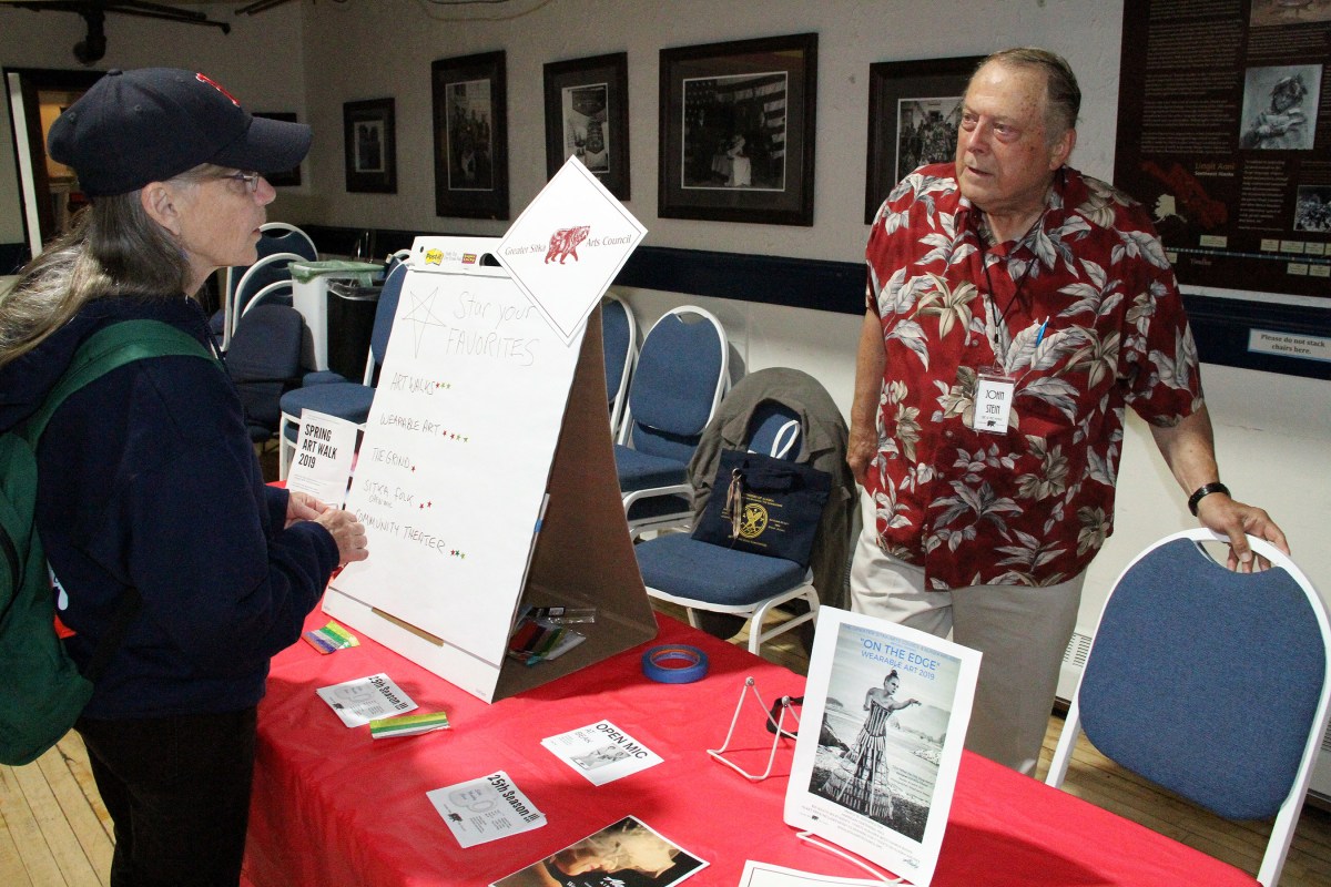 GreaterSitkaArtsCouncilJohnSteinWithPatron Published August 19, 2019 at 2700 × 1800 in Scenes from the fourth Sitka Farmers Market of the 2019 summer ← Previous Next →