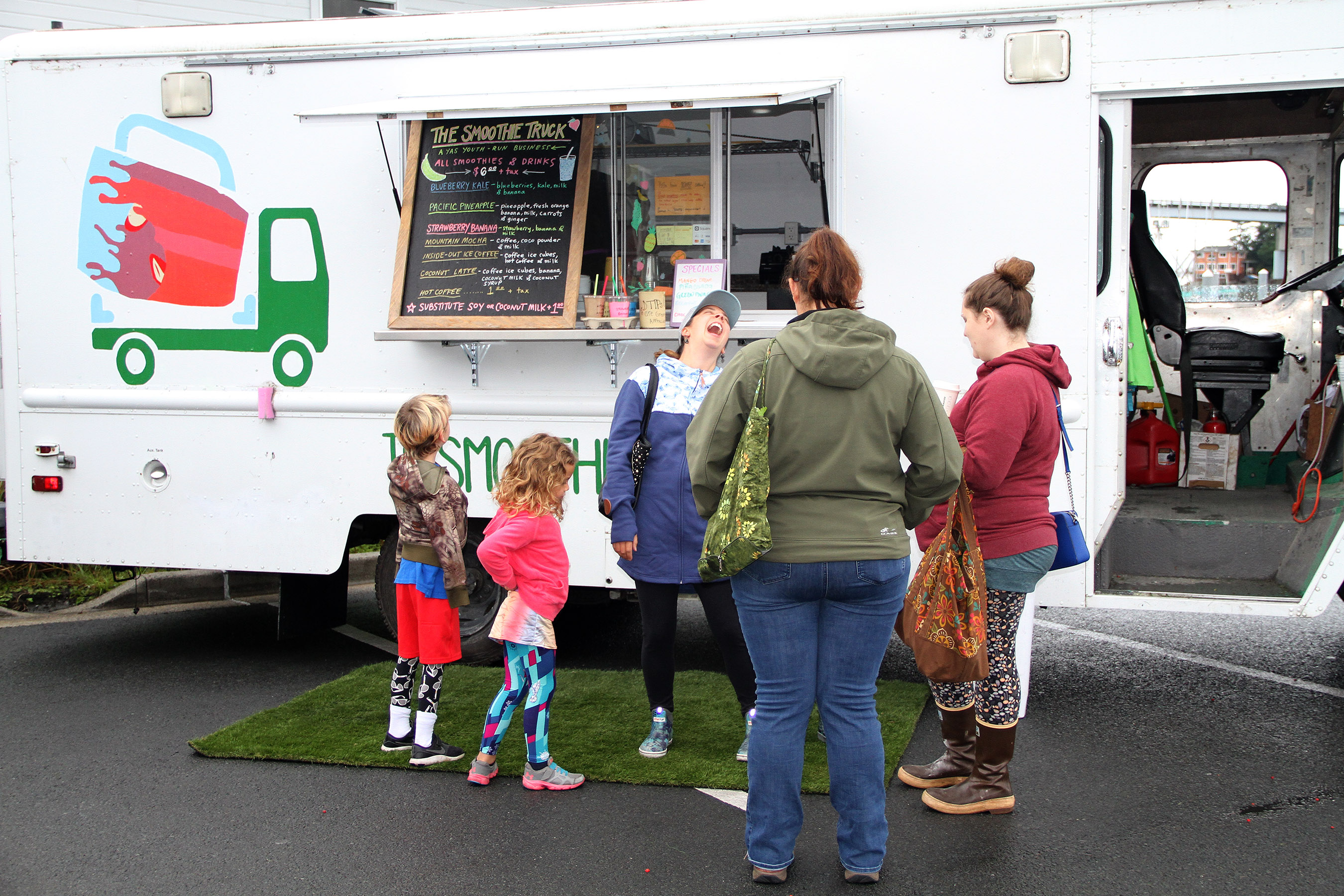 SmoothieTruckCustomersShareLaughWhileWaitingForOrder Published August 19, 2019 at 2700 × 1800 in Scenes from the fourth Sitka Farmers Market of the 2019 summer ← Previous Next →