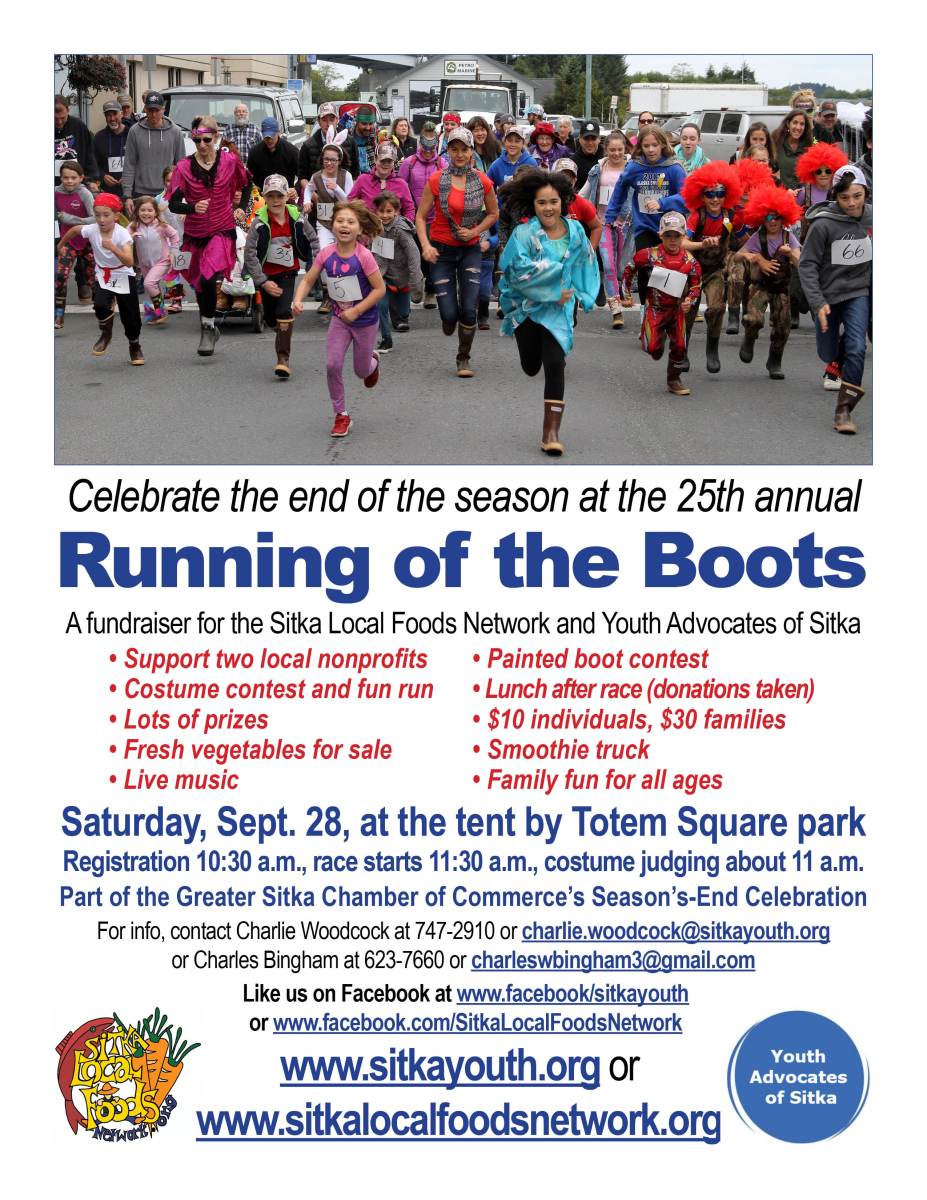 RunningOfTheBoots2019Flier Published August 30, 2019 at 2550 × 3301 in 25th annual Running of the Boots raises funds for Sitka Local Foods Network and Youth Advocates of Sitka