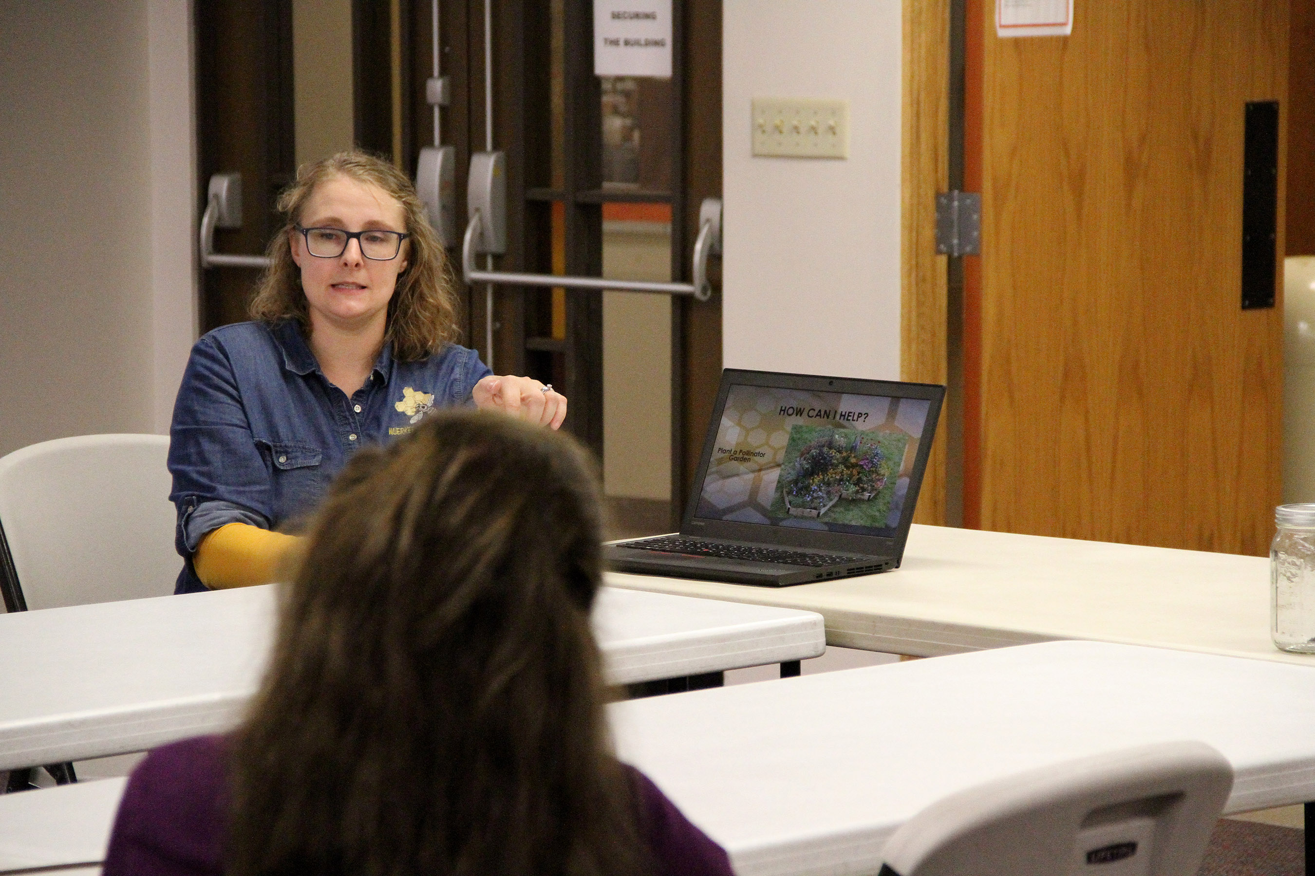 ChristiWithHerPowerPointTalkingPollinatorsAndBeeCollapse Published September 22, 2019 at 2700 × 1800 in Scenes from the Sitka Kitch’s class, ‘Bees, Pollinators, and Honey, Oh, My!’ ← Previous Next →