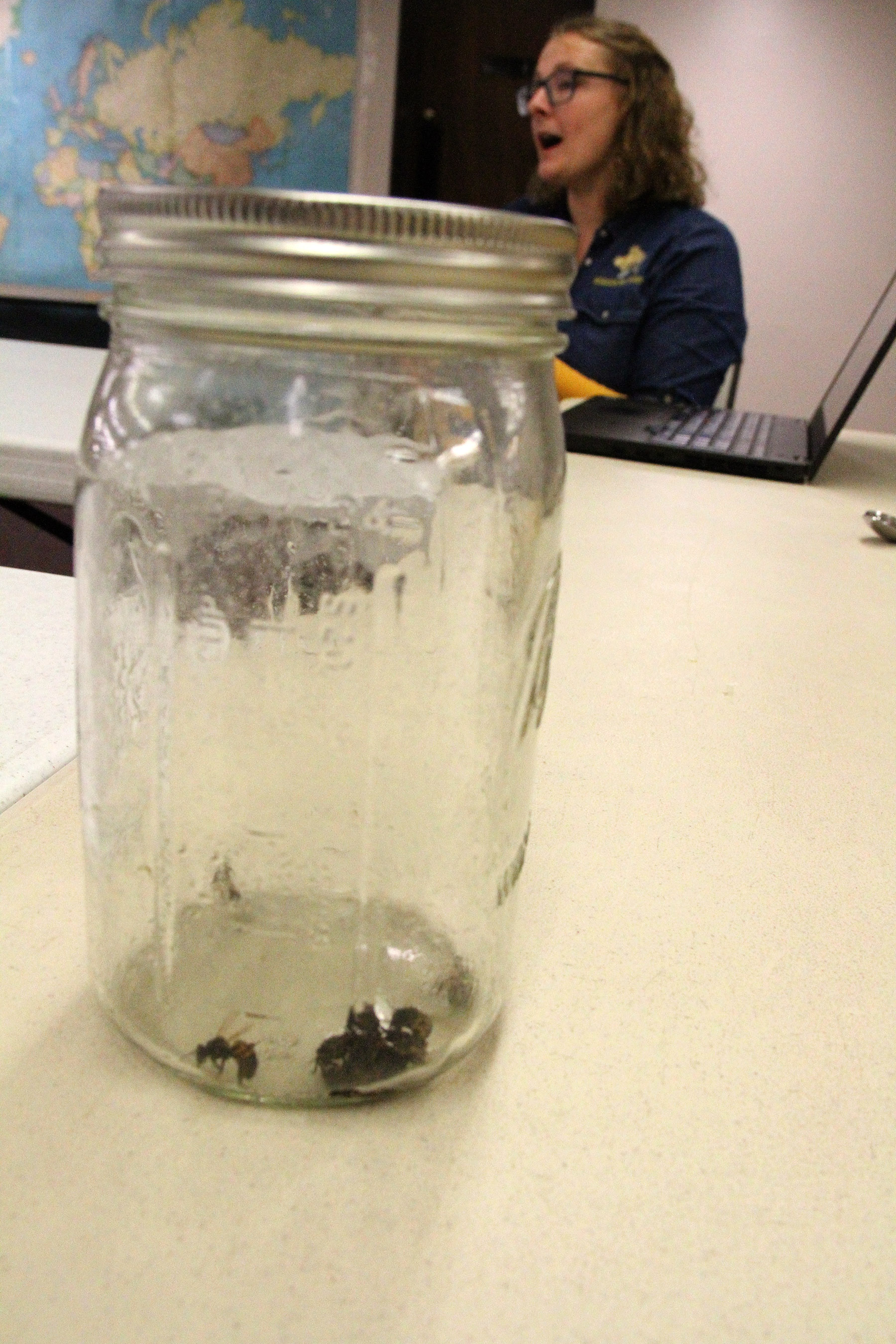 HoneyBeesInJarWithChrstiInBackground Published September 22, 2019 at 1800 × 2700 in Scenes from the Sitka Kitch’s class, ‘Bees, Pollinators, and Honey, Oh, My!’ ← Previous Next →