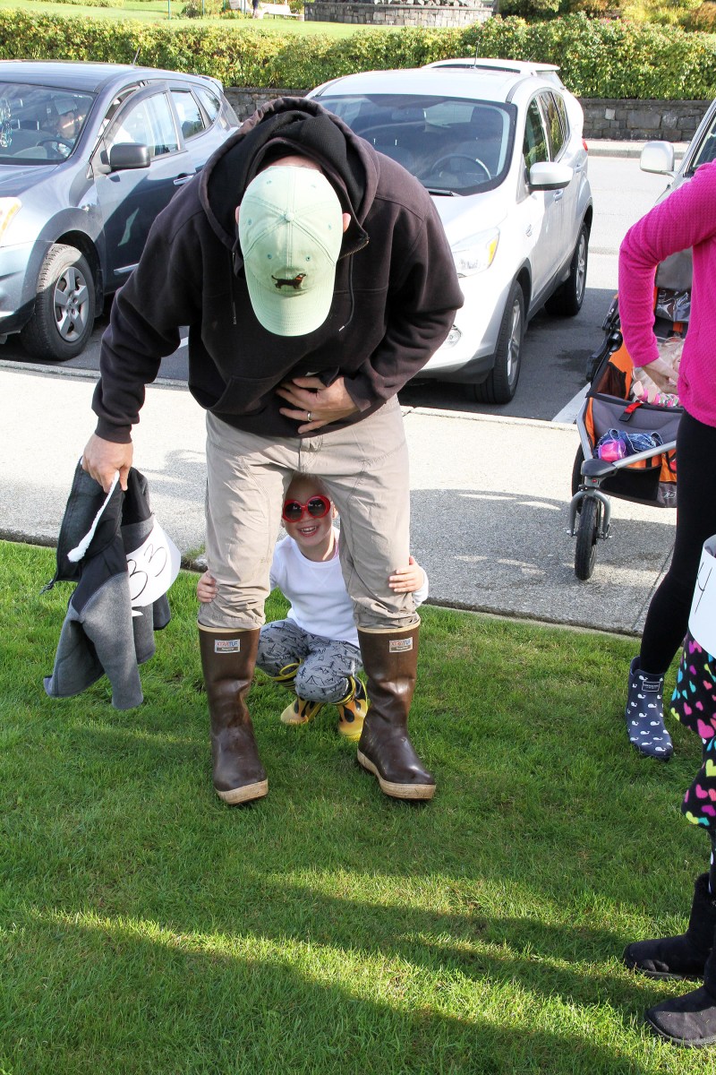 BashfulKidHidingBetweenDadsLegs Published October 3, 2019 at 1800 × 2700 in Scenes from the 25th annual Running of the Boots costumed fun run fundraiser ← Previous Next →