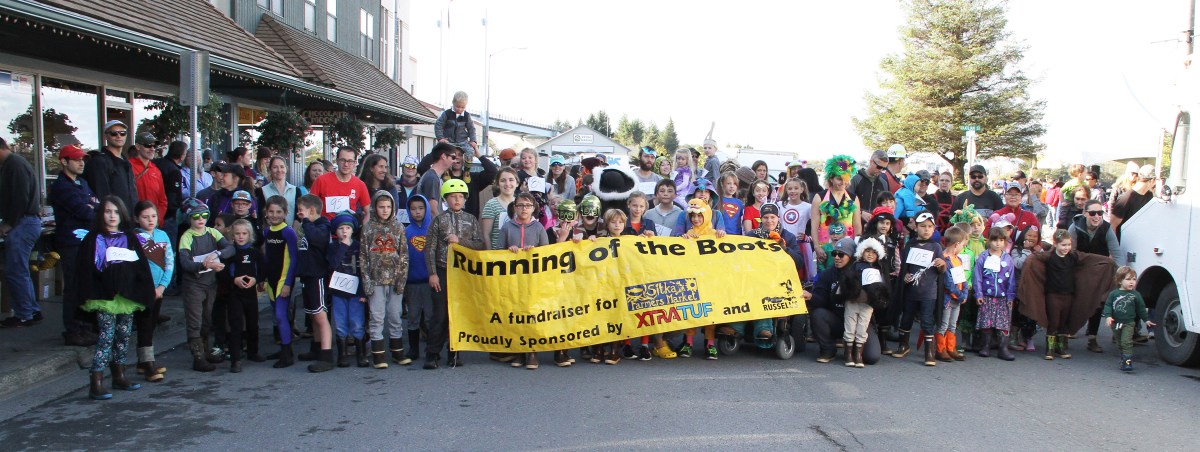 RunnersWithBannerBeforeStart Published October 3, 2019 at 5400 × 2037 in Scenes from the 25th annual Running of the Boots costumed fun run fundraiser ← Previous Next →