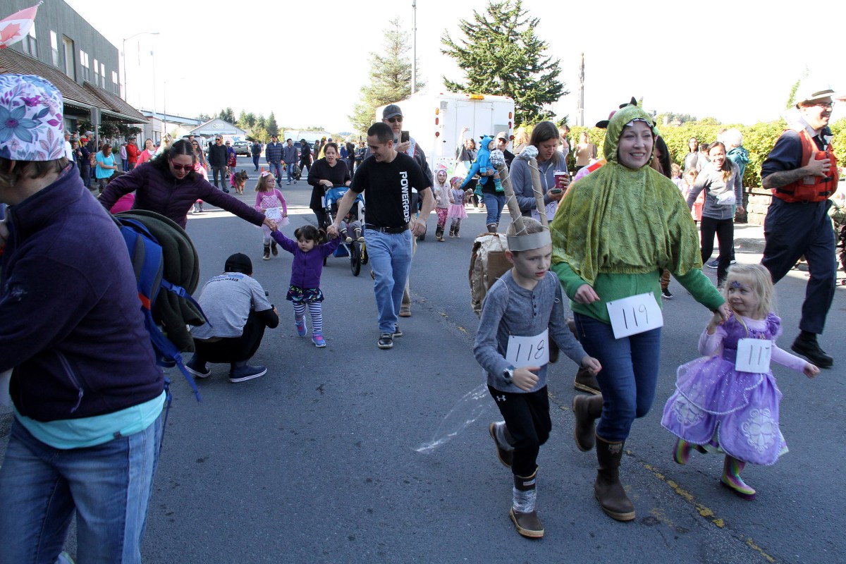 SnailBoyPrincessAndMomAtStart Published October 3, 2019 at 2700 × 1800 in Scenes from the 25th annual Running of the Boots costumed fun run fundraiser ← Previous Next →
