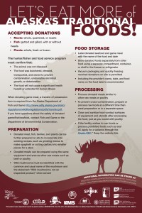 Did you know recent changes to state and federal laws mean you can share your traditional foods with food service programs, hospitals, schools, senior meal programs, food banks, and more. Getting these traditional foods into food service programs is important, as it helps in the healing of sick or isolated elders and it helps connect young people to their local foods. But not all traditional fish and game can be donated due to health risks, so here are a few guidelines to follow from the Alaska Department of Environmental Conservation Food Safety and Sanitation Program.