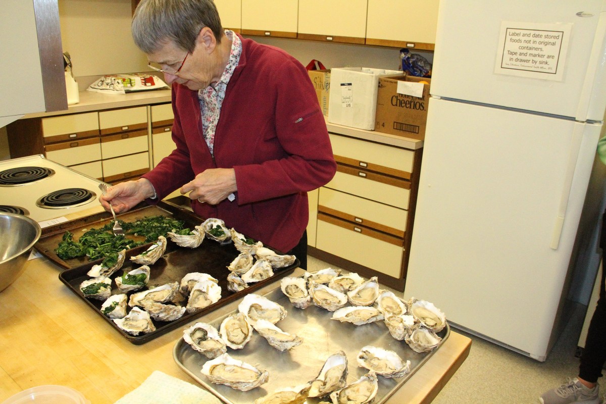 BarbaraPutsSpinachOnOysters Published December 10, 2019 at 2700 × 1800 in Scenes from the Sitka Kitch class Oyster Shucking 101 with Renée Jakaitis Trafton ← Previous Next →