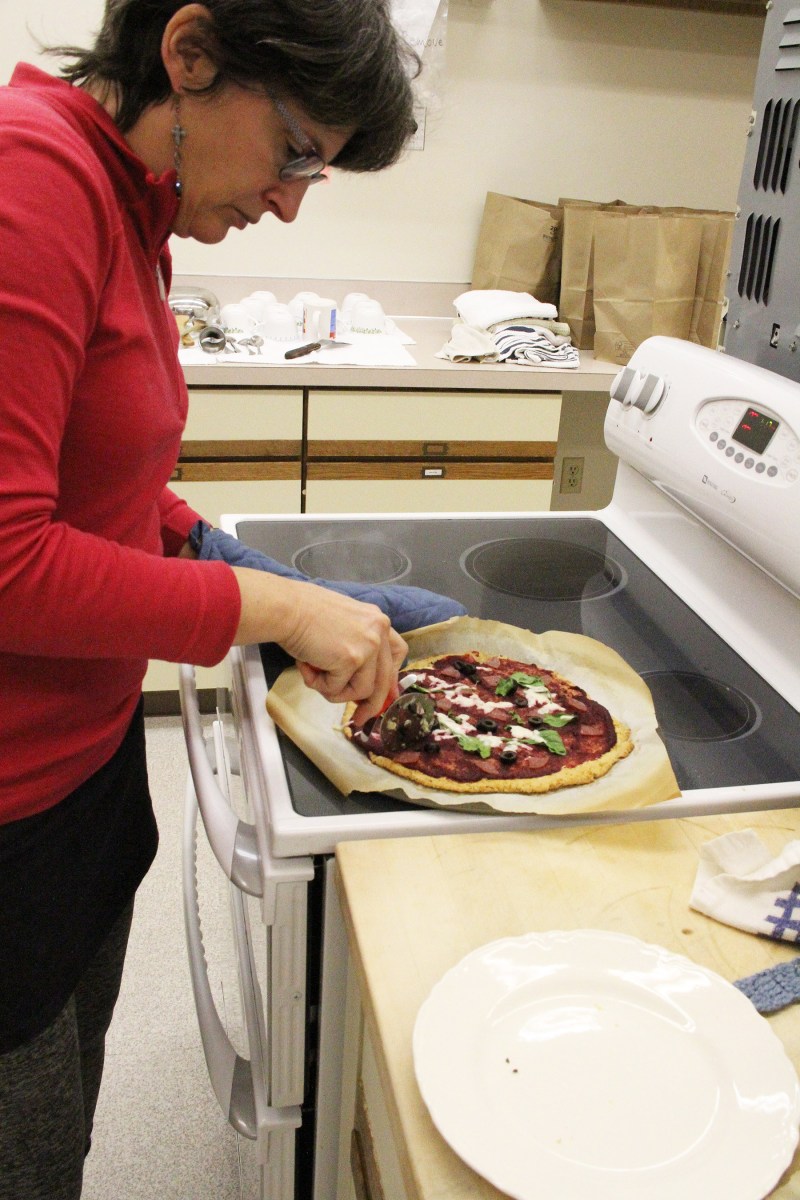 LoriSlicesPizzaWithBeetPesto Published December 29, 2019 at 1800 × 2700 in Scenes from the Sitka Kitch class Rainforest Recipes AIP Pizza With Kate DesRosiers ← Previous Next →