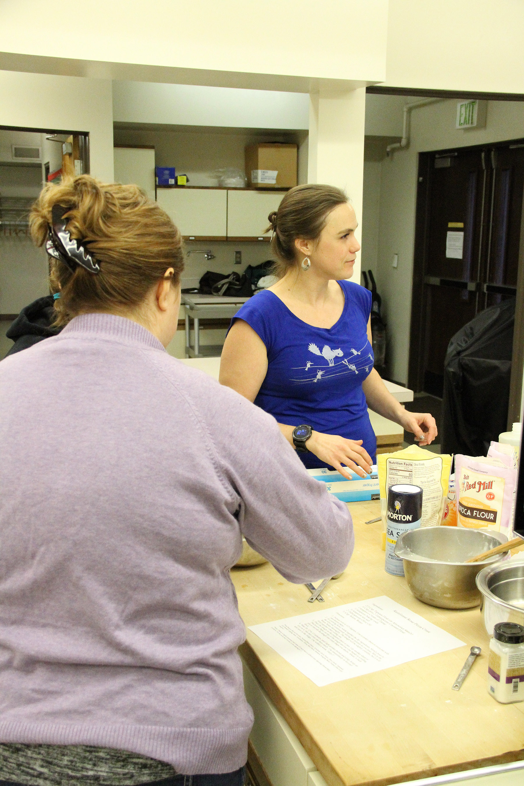 MindyPreparesToRollOutCrustAsKateAnswersQuestion Published December 29, 2019 at 1800 × 2700 in Scenes from the Sitka Kitch class Rainforest Recipes AIP Pizza With Kate DesRosiers ← Previous Next →