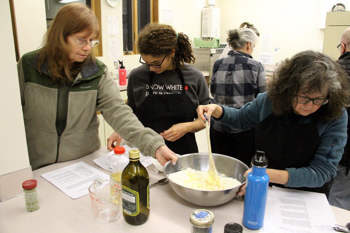 PaulaHoldsBowlAsMarilynCracksEggIntoBatterAndJasmineChecksRecipe Published February 23, 2020 at 2700 × 1800 in Scenes from the Sitka Kitch’s Winter Baking Series class Challah With Robin Sherman ← Previous Next →