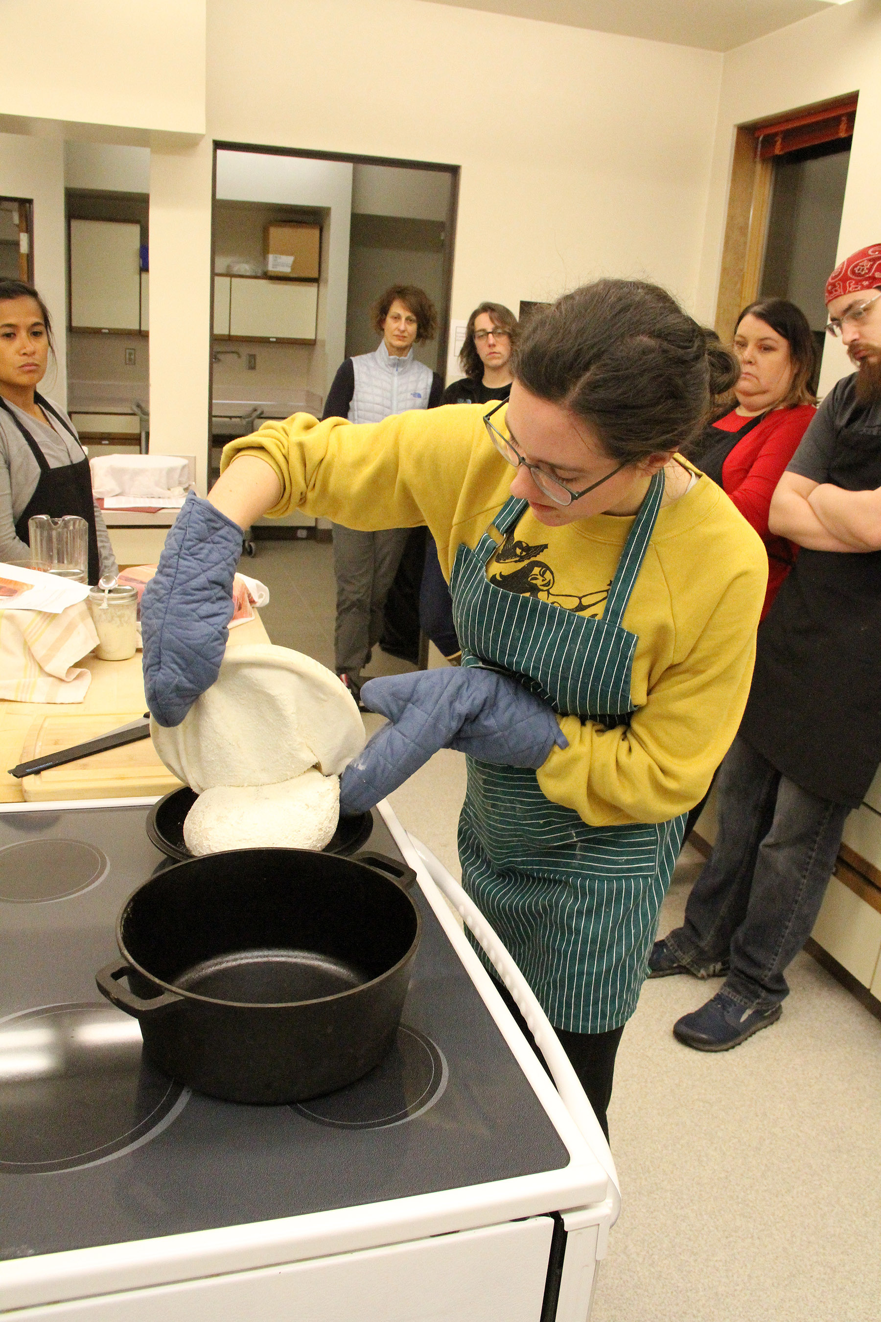 CarolynPoursProofedDoughIntoCastIronLid Published March 2, 2020 at 1800 × 2700 in Scenes from the Sitka Kitch’s second Winter Baking Series: Sourdough Bread With Carolyn Rice class ← Previous Next →