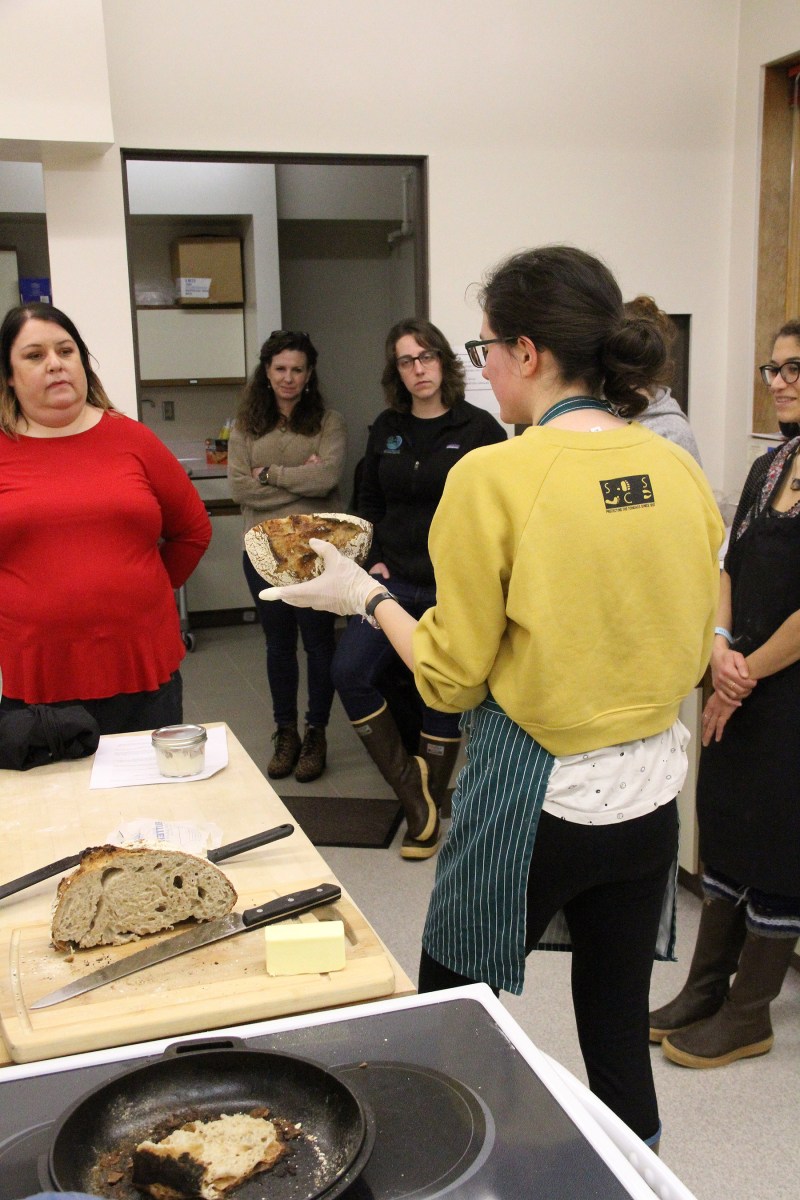 CarolynShowsInsideOfLoafToKendraLalenaCoraRebaJasmine Published March 2, 2020 at 1800 × 2700 in Scenes from the Sitka Kitch’s second Winter Baking Series: Sourdough Bread With Carolyn Rice class ← Previous Next →