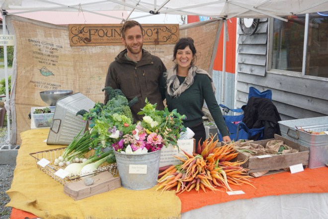 Nick Schlosstein, left, and Leah Wagner of Foundroot seed company operate their farm stand in Haines. Foundroot was one of the two 2019 winners of the Path to Prosperity business development competition.