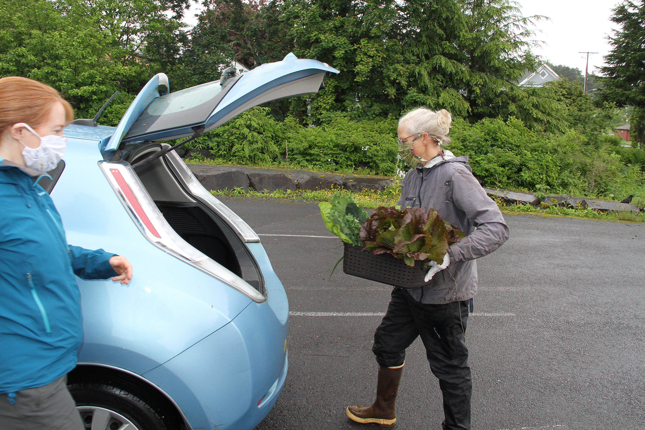 JeanineWatchesLauraLoadProduceInBackOfCar Published June 23, 2020 at 2700 × 1800 in Scenes from the first Sitka Farmers Market of the 2020 summer ← Previous Next →
