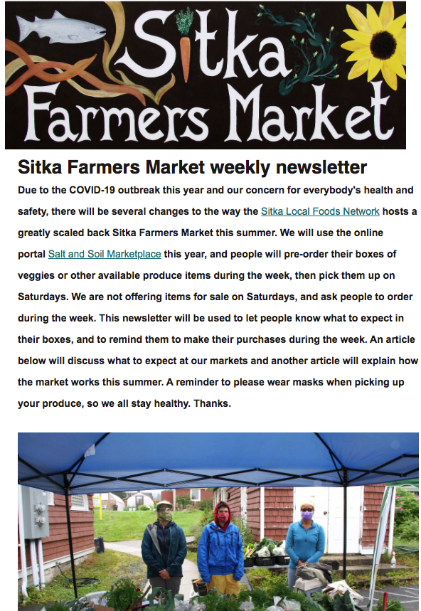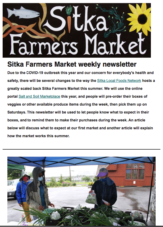 We just sent out the July 28, 2020, edition of the new Sitka Farmers Market weekly newsletter. Click this link to see the newsletter.