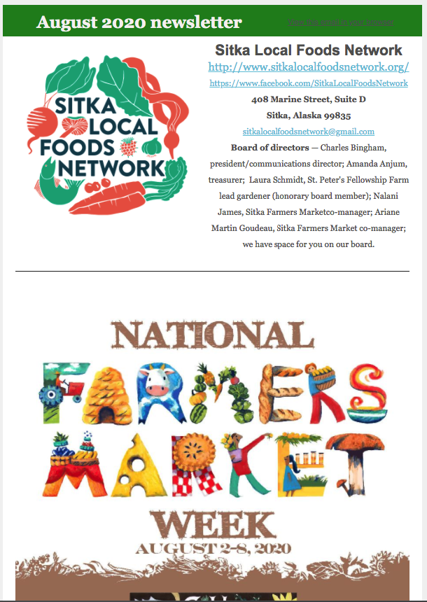 We just sent out the Aug. 25, 2020, edition of the Sitka Farmers Market weekly newsletter. Click this link to see the newsletter.