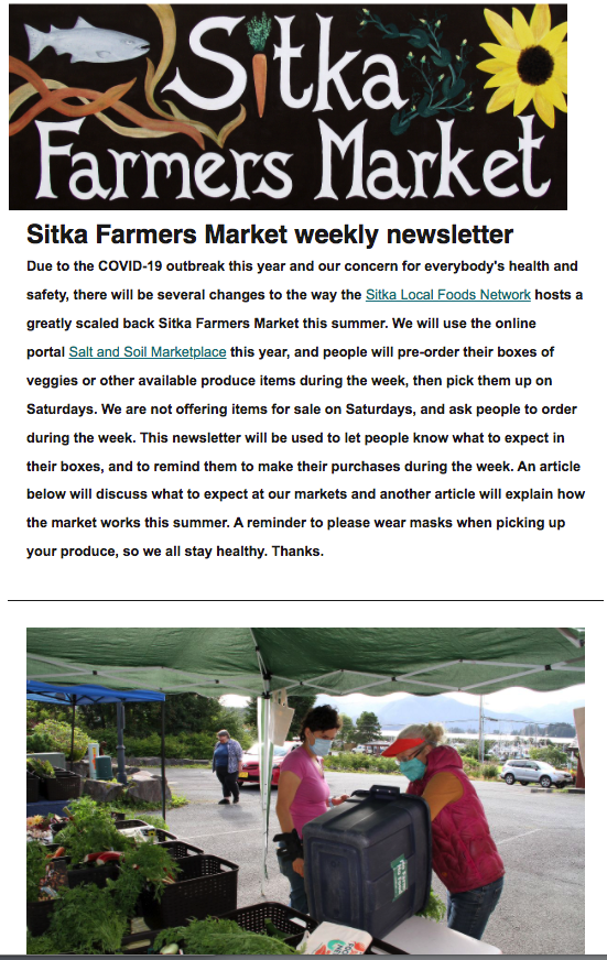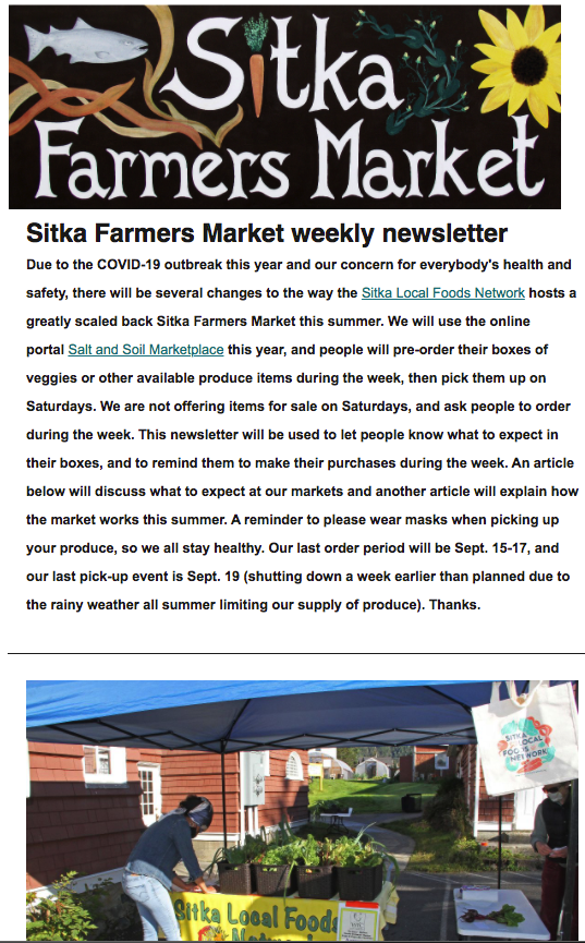 The Sitka Local Foods Network hopes to be able to return to a full market, or a hybrid with some pre-orders and some market-day sales, next year.