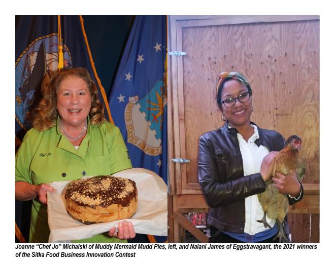 One winner is making frozen mud pies while the other winner is raising chickens for fresh, local eggs to sell to Sitka residents. Congratulations to Joanne “Chef Jo” Michalski of Muddy Mermaid Mudd Pies and Nalani James of Eggstravagant, who won the two $1,500 prizes in the fourth annual Sitka Food Business Innovation Contest.