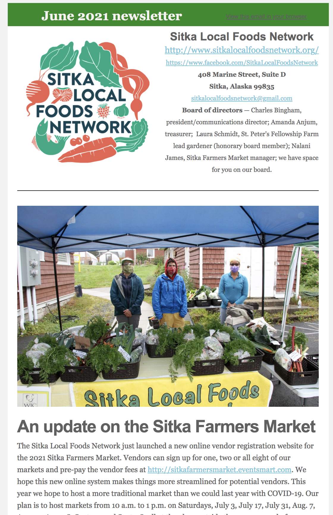 Click this link, if you want to support the Sitka Local Foods Network’s efforts to grow more healthy produce for Sitka residents. St. Peter’s Fellowship Farm holds a Certified Naturally Grown farm designation, which shows the Sitka Local Foods Network’s commitment to growing produce in a sustainable manner with the minimal use of chemical fertilizers.