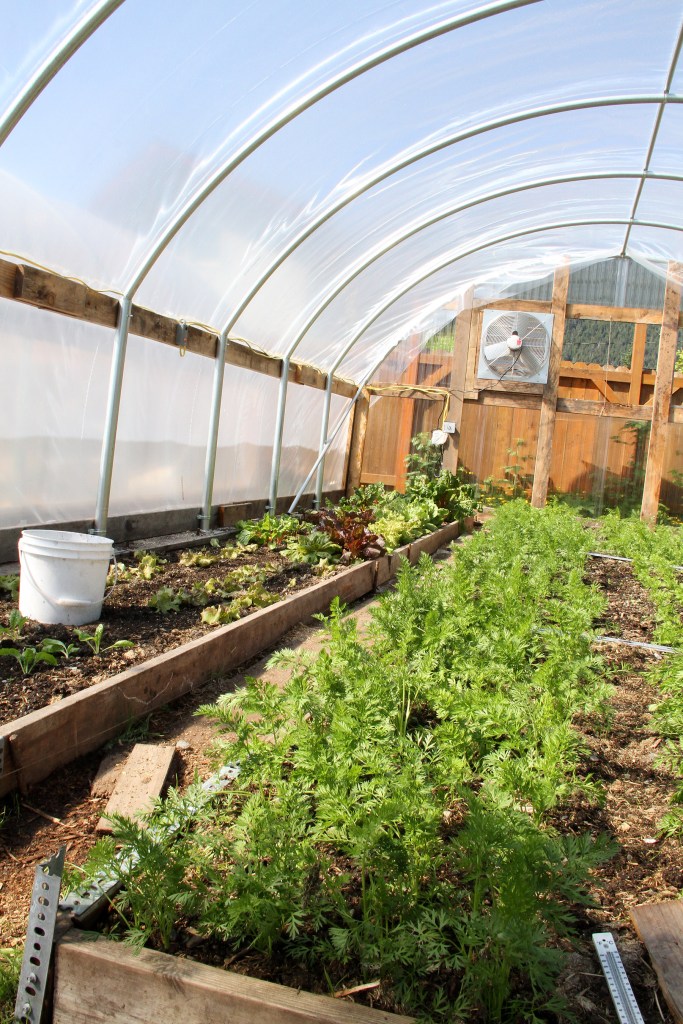 That high tunnel saved our 2020 Sitka Farmers Market season, as it helped protect some of the more fragile plants from the extreme cold and rain we had that year. That prompted the Sitka Local Foods Network to buy another 16×28 high tunnel of the same make and model, plus we added an automated venting system and fan to both of the new high tunnels.
