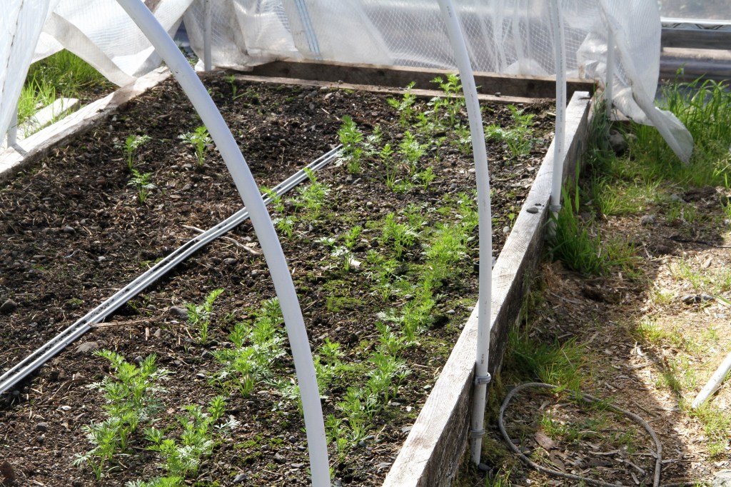 It started with a small, used high tunnel a former Sitka Local Foods Network board member donated to the group when she moved out of town. That small high tunnel, which still is in use at St. Peter’s Fellowship Farm, has been at the communal garden for about 5-6 years now. It was first used as a place to start seedlings and now has chard and kale growing in it.