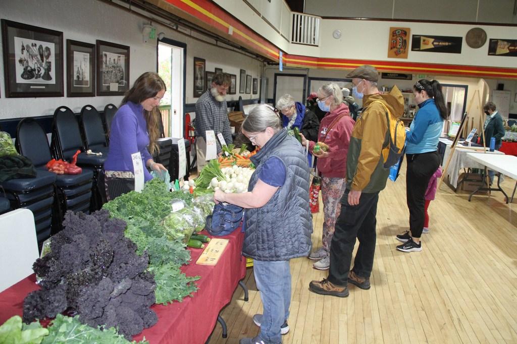 In recent years, the Sitka Local Foods Network has hosted 7-8 Sitka Farmers Markets during the summer (from July to September). Due to COVID-19, we had to greatly scale back our 2020 Sitka Farmers Markets, focusing just on produce sales and using an online sales portal, but we did double our number of market weeks. In 2021, we hosted an outdoor-only market that brought back some of our vendors. In 2022, we returned to our usual venue of the Alaska Native Brotherhood Founders Hall after a two-year absence, and we almost had a normal market (with masking to prevent the spread of COVID-19 and no half-tables to spread out vendors). We haven’t set our 2023 market dates yet, but we anticipate we will have a more normal market experience this year.