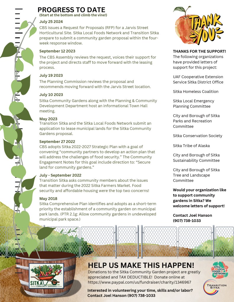 “In 2015 we had the one raised bed, we built maybe three or four more,” she continued. “And over the years, we built another two, another three, another four. Then we got a grant, a partnership grant, with Sitka Tribe of Alaska that provided the funding to purchase the greenhouse.”