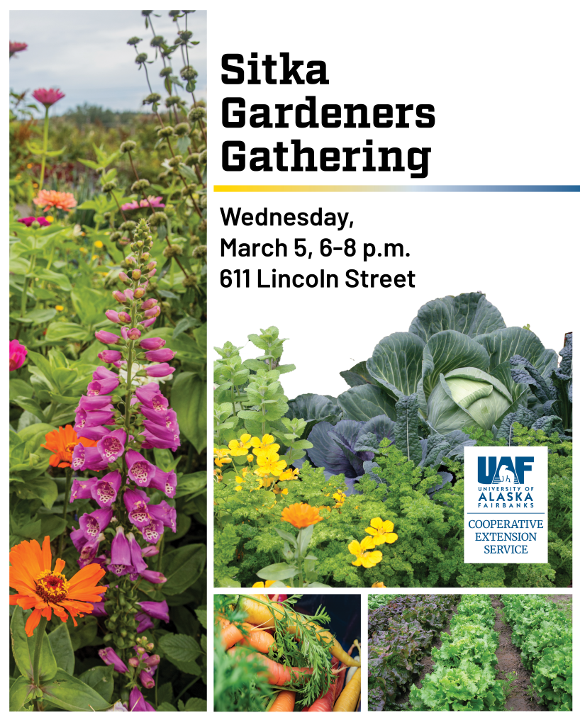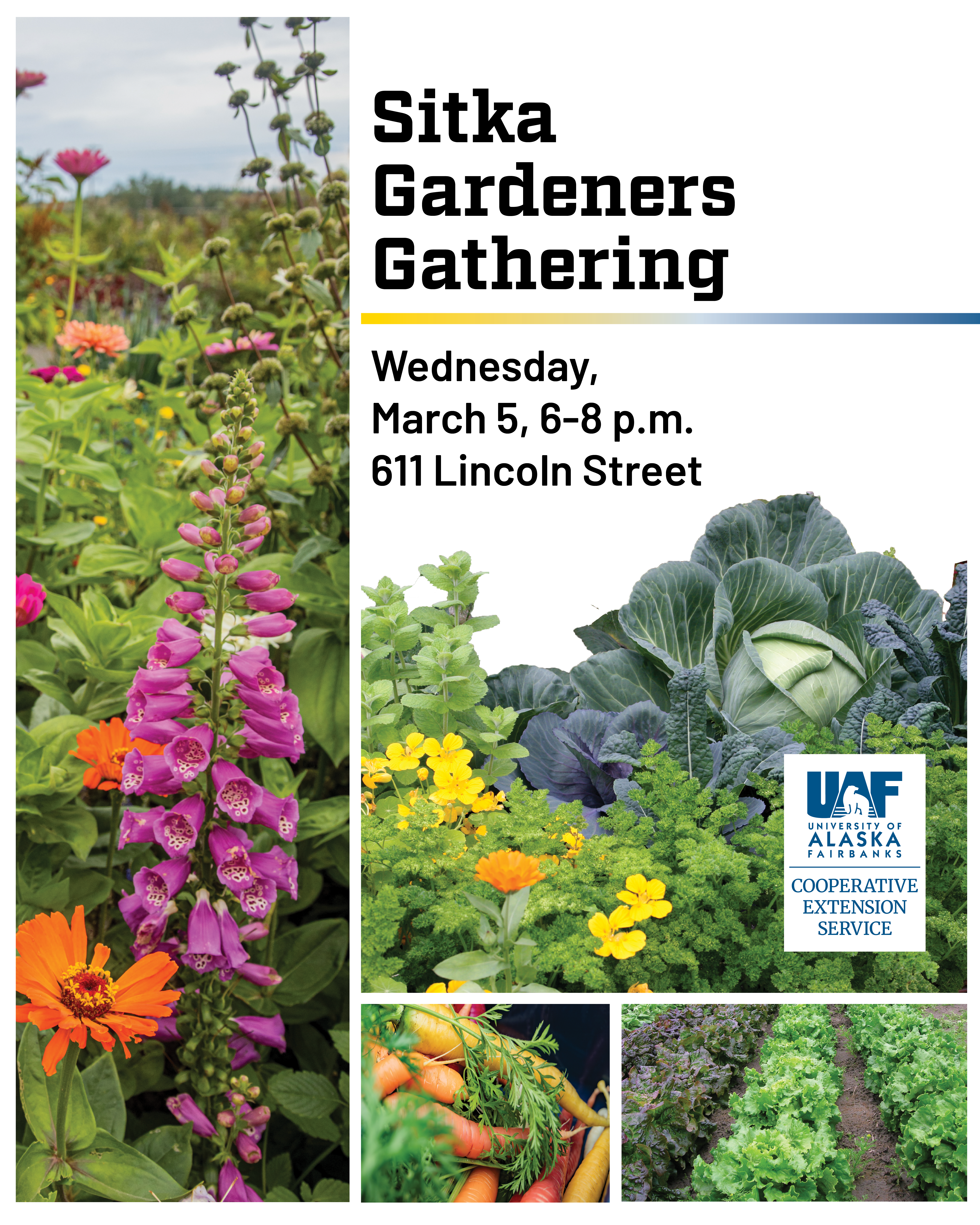 All growers, entrepreneurs and local food enthusiasts are invited to gather, connect and share experiences of growing food in Sitka over a potluck dinner organized by the UAF Cooperative Extension Service. This event is at 6 p.m. on Wednesday, March 5, at the See House behind St. Peter’s By The Sea Episcopal Church.
