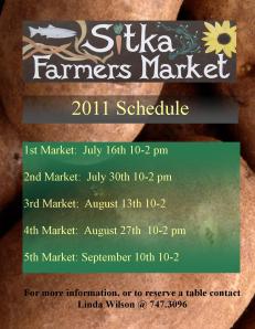For more information about the market or hosting a booth, contact Sitka Farmers Market Manager Johanna Willingham at 738-8836 or johanna.willingham@gmail.com. By the way, we always need volunteers to help set up and take down the market before and after the event. Your help is greatly appreciated.