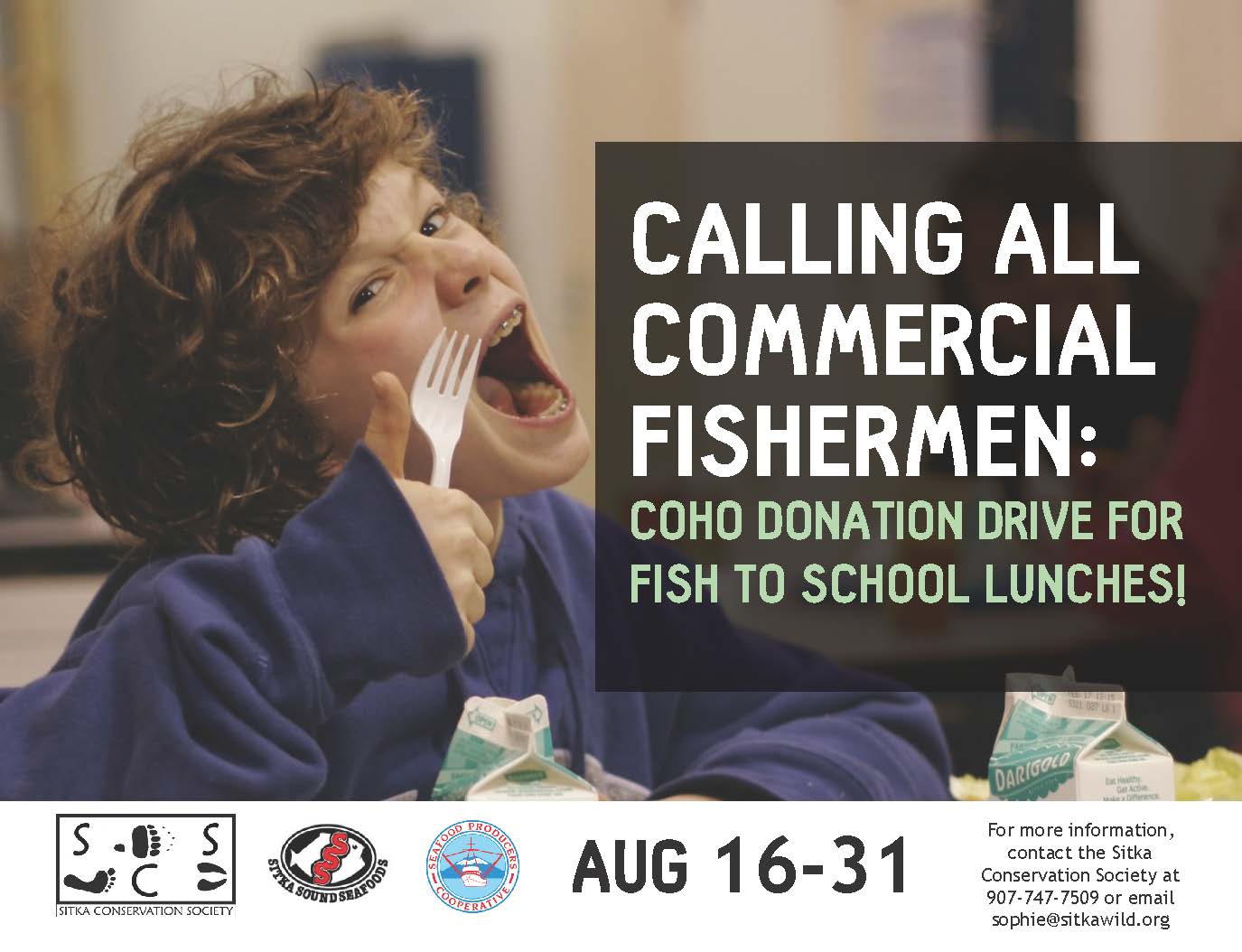 The coho salmon donation period is Monday. Aug. 20, through Sunday, Sept. 2. To donate, commercial fishermen can sign up and indicate how many pounds they want to donate when they offload at Seafood Producers Cooperative or Sitka Sound Seafoods during the donation period. The program can only accept commercially caught fish (no sport or subsistence fish). The hope is to get enough coho salmon and rockfish donated that locally caught fish can be offered to students at least once a week. Sign-up sheets will be posted at the scale shacks and in the main offices. Only coho salmon and rockfish will be accepted.
