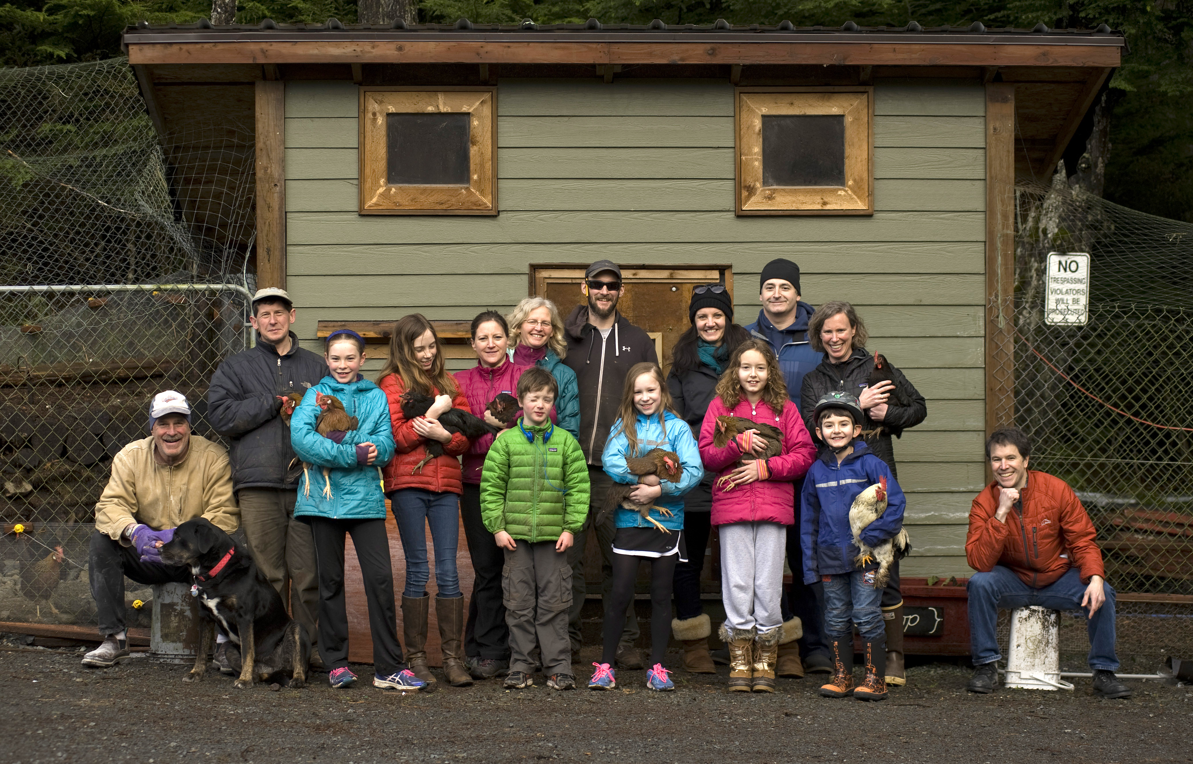 Some of the members of Le Coop, one of Sitka’s chicken coop co-ops, pose with a few of their birds. (Daily Sitka Sentinel Photo by James Poulson, other photos in story are by Charles Bingham)