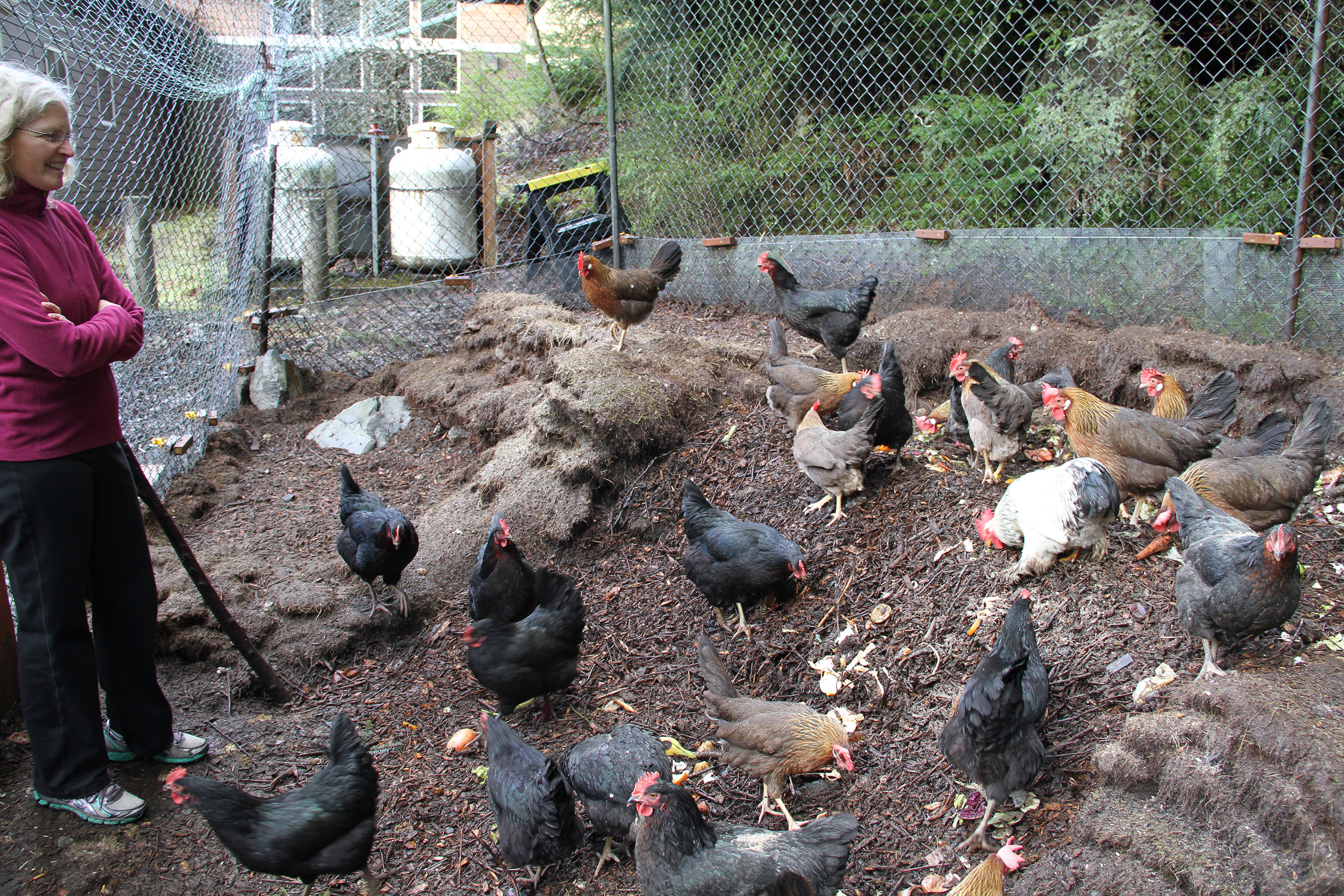 “This is a nice place to bring my compost, and the chickens love it,” Erika said. “It’s nice to have eggs that are fresh and organic. I give some away.”